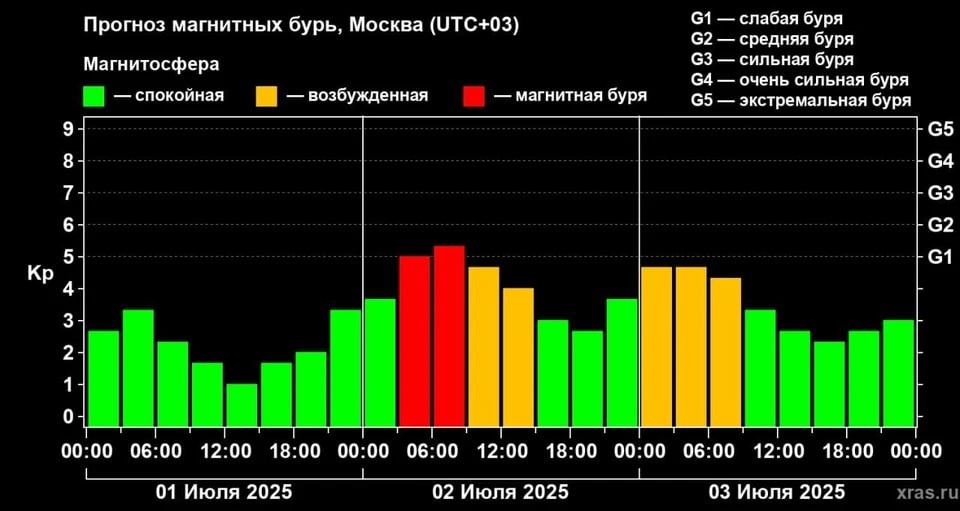 Магнитные бури будут терзать сегодня жителей Ярославской области Как сообщили в канал лаборатории солнечной астрономии ИКИ РАН, геомагнитное поле может быть неспокойным 2 июля, из-за краткосрочного роста плотности межпланетного газа. К счастью, магнитные бури даже при самом плохом прогнозе будут очень слабыми. Но метеозависимые ярославцы, возможно, почувствуют себя не очень хорошо.