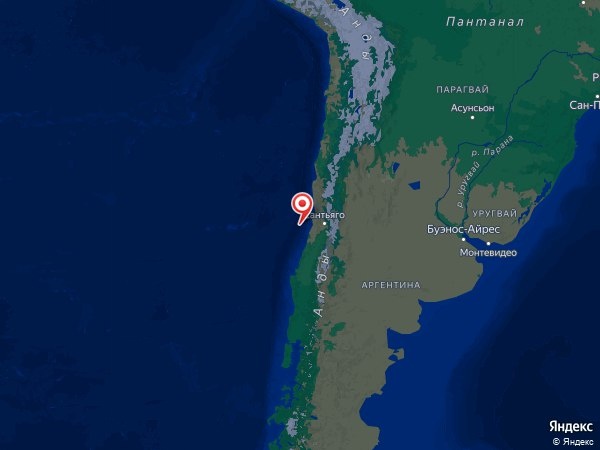В 117 км к юго-западу от Вальпараисо, Чили.