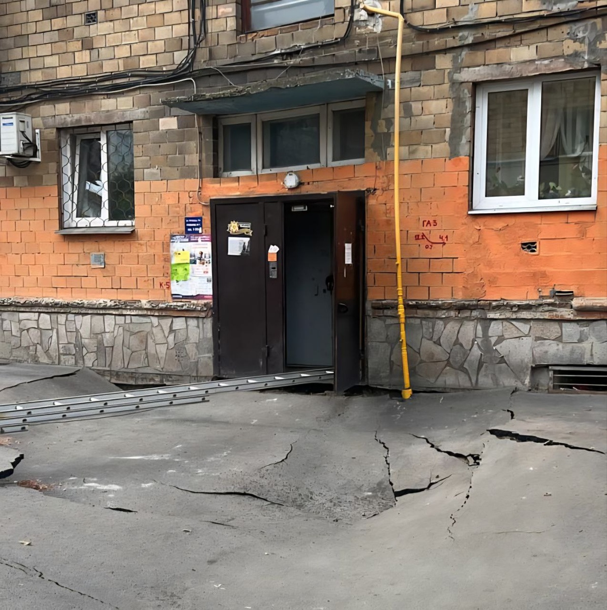В Красноярске на улице Бограда провалился грунт возле многоквартирного жилого дома