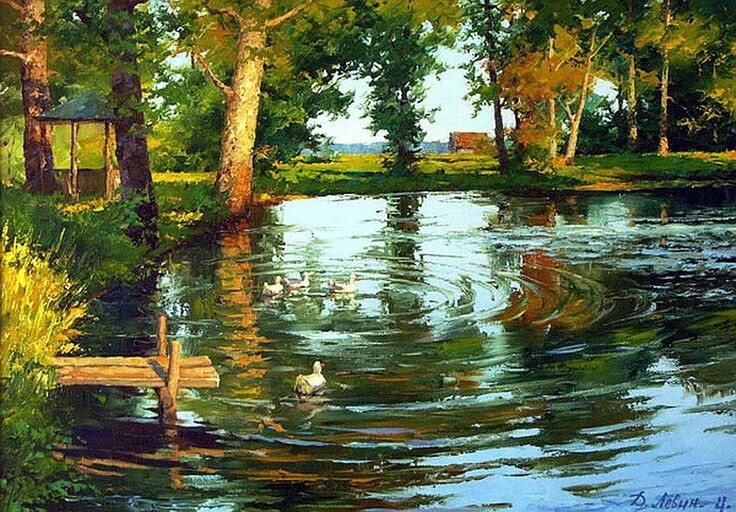 Художник 🎨 Дмитрий Левин *** В полях ромашки, васильки, Луч солнца на траве блестит, Жужжанье пчёл, полёт стрекоз, Чудес природы щедрый воз. Деревня летом – благодать, Душой здесь можно отдыхать, Забыть про городскую пыль, Послушать, как поёт ковыль, Колышет ветер на лугу, И вдаль смотреть, как на бегу, Бегут барашки облаков, В мир тишины, простых стихов. Здесь у реки прохлада ждёт, В ветвях здесь иволга поёт, А вечерком костёр горит, Гитара с чувством говорит. В деревне лето – это жизнь, Забыты беды и корысть, Где простота и красота, И отдохнёт всегда душа. ©Борис Френкель 30.06.2025
