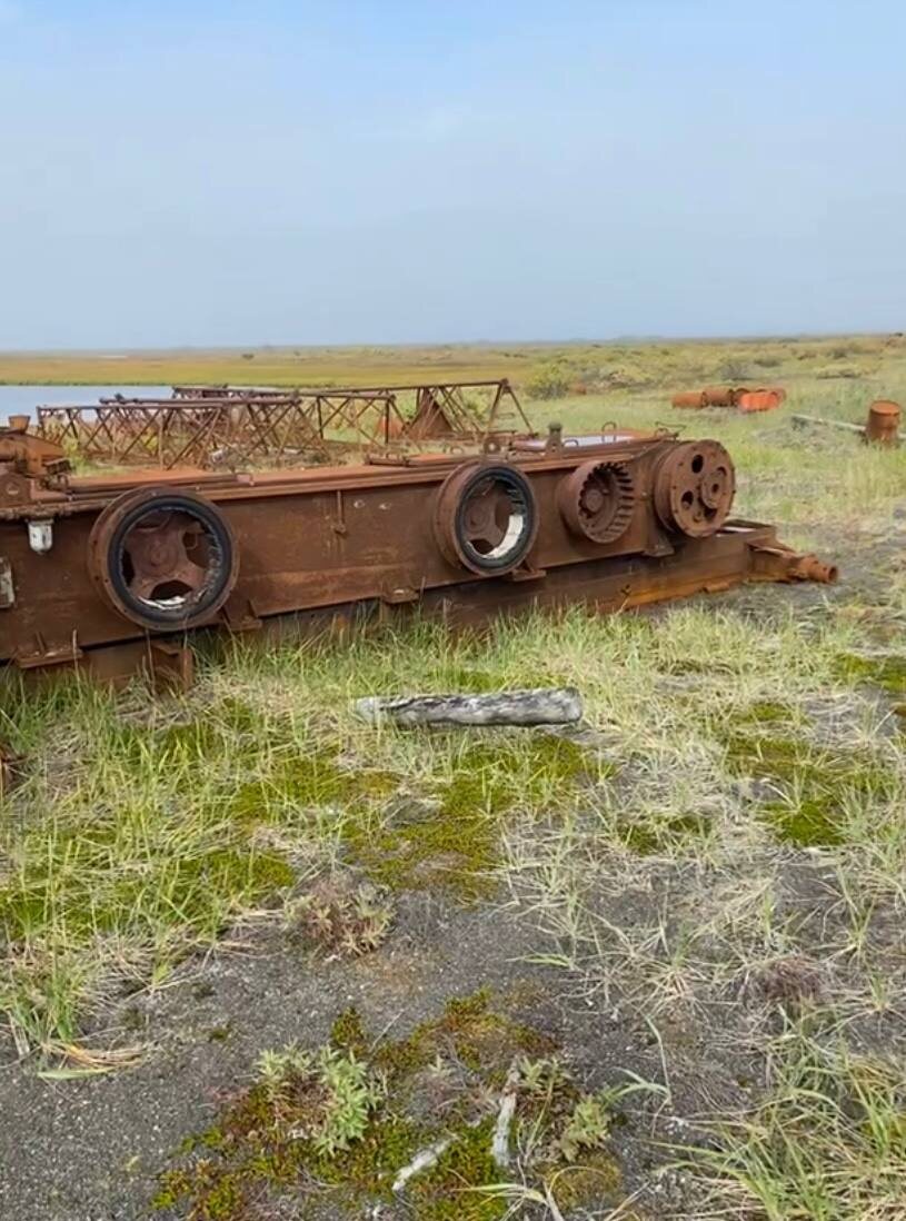 Заброшенная геологоразведочная база. Заброшенная геологоразведочная база… В сентябре 2024 года я участвовал в путешествии с Чукотки на Камчатку. Опишу самые интересные моменты этого приключения. Мы ехали на гусеничном вездеходе по берегу моря, по песчаной косе, из Майнопыльгино в Хатырку. Передать окружающую нас красоту не смогу (нет таких слов, чтобы описать всю дикость и первозданность этой местности). Если, конечно, не опускать взгляд на полосу прибоя… даже там, где человек бывает несколько раз в год, да и то проездом, лежит мусор, в основном пластиковые бутылки, конечно это не от местных жителей (их попросту столько нет, что бы использовать столько тары). Все выброшено морем: бутылки, автомобильные покрышки, спутанные сети, ярко красные сапоги, почему - то все левые… Все бутылки с иероглифами, ни одной надписи на кириллице не увидел. Убрать полосу прибоя в этой местности задача нереальная.. Примерно на половине пути на берегу показался холм, выделяющийся своей неестественностью