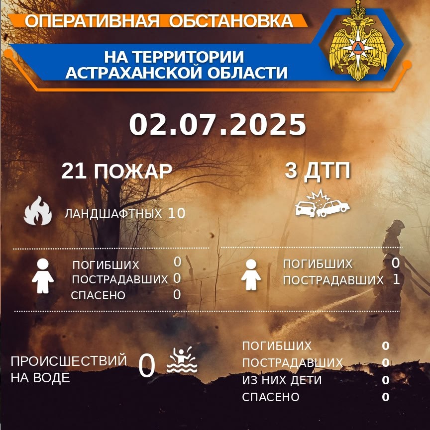 🚨Оперативная обстановка на территории Астраханской области по состоянию на 00:00 02.07.2025
