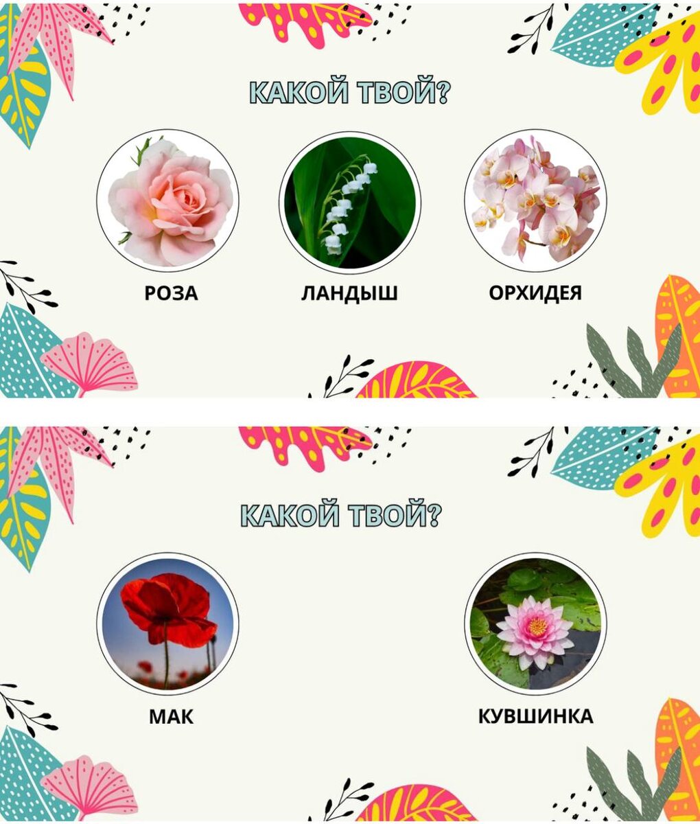 Выберете цветок на картинке и узнайте о себе, своем поведении и личности больше.
