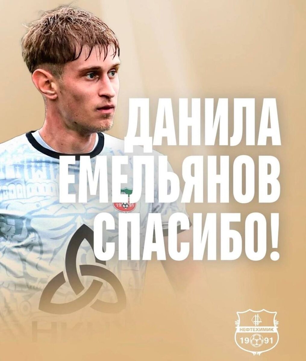 🚨 Полузащитник Данила Емельянов покинул футбольный клуб «Нефтехимик