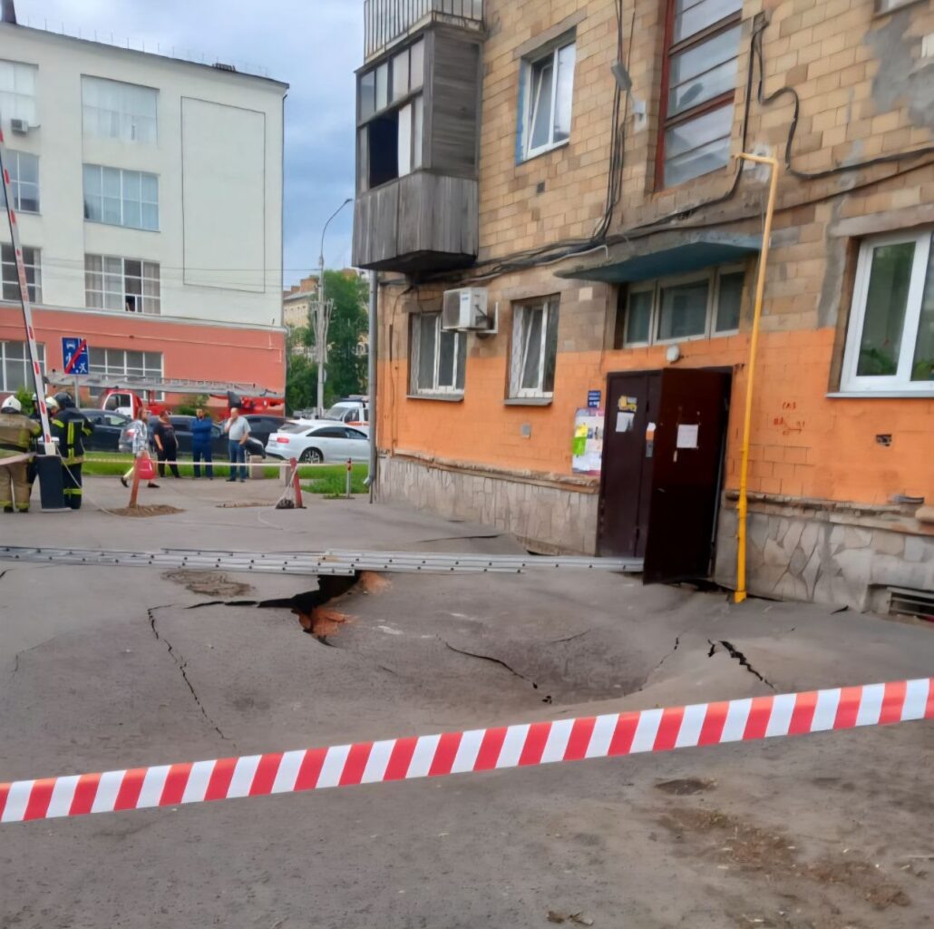 Перед домом в центре Красноярска образовался опасный провал