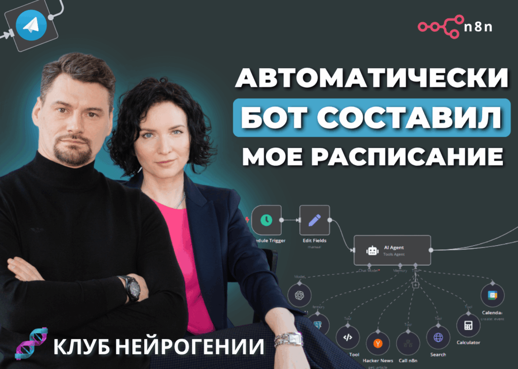 Каждое утро я просыпался с мыслью: «Что там у меня сегодня по делам?» Чаты, встречи, дедлайны, клиенты, пару звонков и ещё втиснуть тренировку или кофе с другом. А потом забыл, перепутал, перенёс, не успел. Стандартная история, знакомая каждому, кто работает на себя. Пока я не подключил бота, который начал составлять расписание за меня — автоматически, по приоритетам, загрузке и времени суток. Сейчас это звучит как фантастика, но я честно не помню, когда последний раз сам вручную забивал события в Google Календарь. Всё делает мой ИИ-бот. Он живёт в Telegram, связан с n8n, подключён к Notion, Google Calendar и моим задачам в Trello. Ему не нужно напоминать, что я обещал созвон с клиентом или что в среду я не выспался и лучше не ставить встречи до 11. Вот что делает бот по расписанию: Когда я только запускал этот сценарий, всё казалось сложным. Но оказалось, что n8n позволяет собрать это как лего: каждая нода — это модуль, который можно заменить, убрать или доработать. Например, утром б