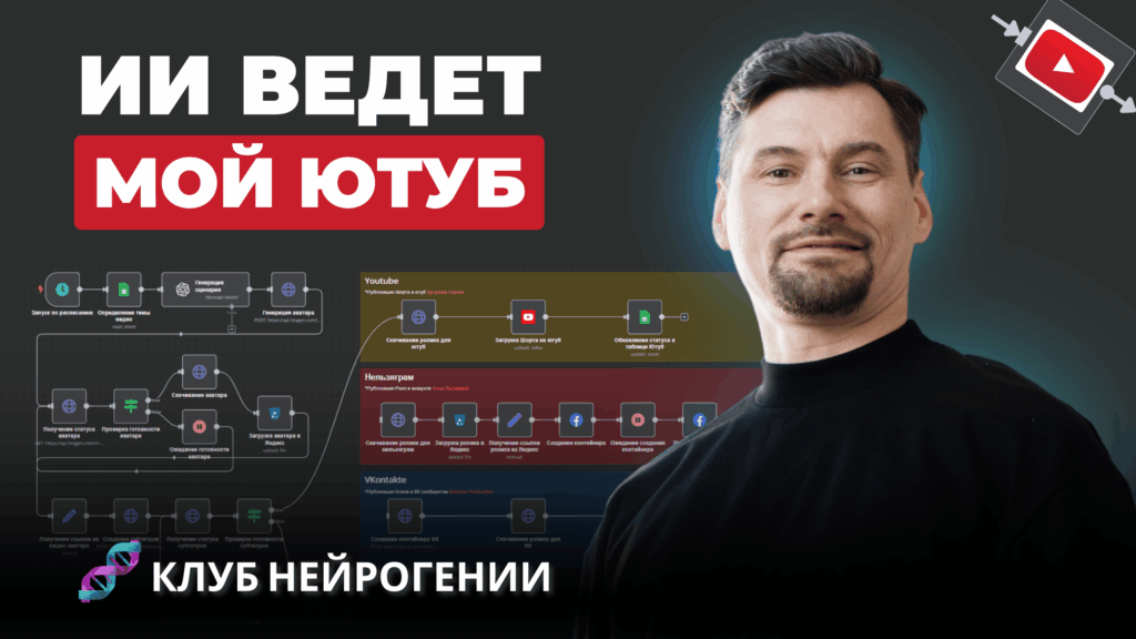 Когда мне впервые сказали, что ИИ может вести YouTube-канал, я откровенно посмеялся: «Ну да, сейчас ещё и монтаж сам сделает…» Но, как это часто бывает, реальность оказалась куда интереснее. Уже через пару недель я смотрел, как нейросети сами придумывают темы, пишут сценарии, озвучивают голосом, монтируют видео и выкладывают ролики на канал — причём с заголовками, хэштегами и обложками. И всё это — под моим контролем, но без моего участия в рутине. Вся магия происходит через n8n. Один рабочий поток — и YouTube живёт своей жизнью. GPT-4 генерирует идеи, ElevenLabs озвучивает голосом, CapCut собирает видео, а нейросеть рисует обложку. Всё, что мне остаётся — проверять финальный результат и наблюдать, как растут просмотры. Вот как сейчас выглядит обычный день на моём канале: Раньше я на каждый ролик тратил по 4-6 часов. Сейчас — максимум 10 минут, чтобы глянуть сценарий и внести пару правок. Остальное делают ИИ-агенты, которых я собрал через n8n. Один раз настроил — и погнал по кругу. Эт