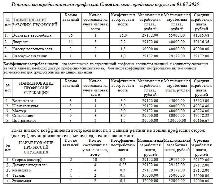 На рынке труда Снежинска дефицит – и не абстрактный, а вполне конкретный. Центр занятости города назвал самые востребованные профессии на 1 июля 2025 года. Список формировался по реальным заявкам от работодателей, а значит – не для галочки, а по делу.