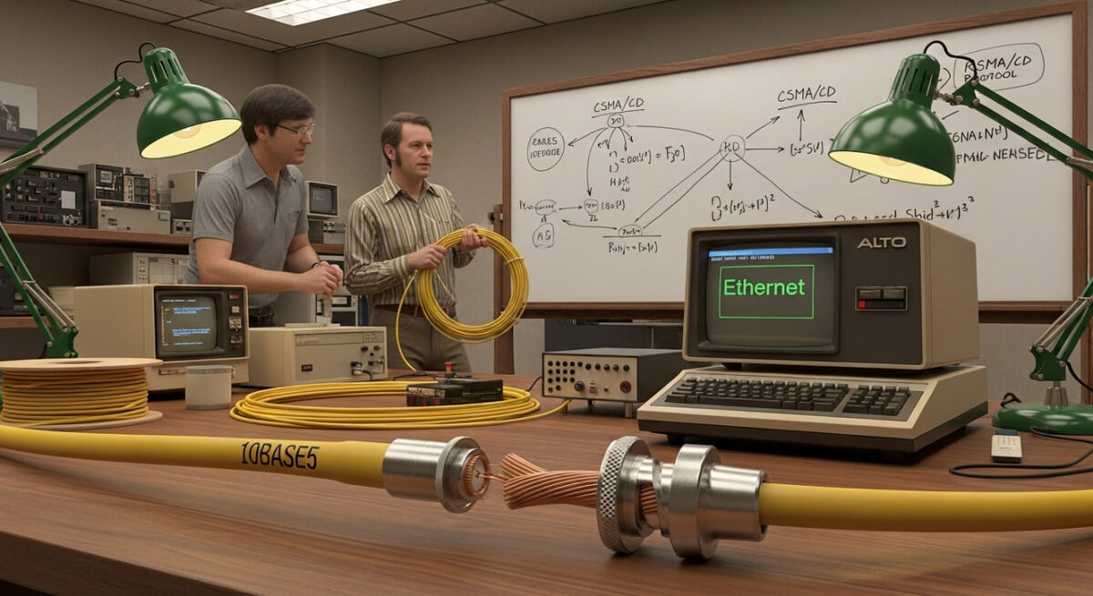 Днем рождения Ethernet можно считать 22 мая 1973 года, когда Роберт Меткалф и Дэвид Боггс опубликовали докладную записку, описывающую экспериментальную сетевую технологию в исследовательском центре Xerox PARC. Название «Ethernet» родилось из красивой аналогии: разработчики представляли себе «эфир» — невидимую среду, через которую распространяются электромагнитные волны.