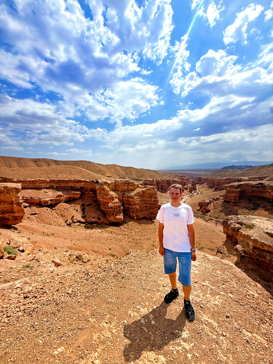 Завершая знакомство с Казахстаном, наша Экспедиция «Путешествие в Сердце Евразии» (@hieurasia) остановилась в потрясающем месте — у Чарынского каньона в Алматинской области. Как отметил наш гид, это одна из самых популярных природных достопримечательностей Казахстана, младший брат легендарного Гранд-Каньона в США. Чарынский каньон находится недалеко от границы между Казахстаном, Китаем и Кыргызстаном. Его общая протяженность составляет 154 километра. Глубина достигает 150-300 метров. Жемчужина каньона — протяунувшаяся на несколько километров Долина замков со скалами, похожими на колонны. На осмотр каньона у нас было около часа — слишком мало, чтобы впитать всю красоту этого места. Мы успели лишь полюбоваться видами с высоты, но этого хватило, чтобы влюбиться в каньон всем сердцем. Для полноценного погружения в атмосферу Чарынского чуда нужно закладывать минимум 3–4 часа. А я бы, не раздумывая, провёл здесь полдня-день, исследуя каждый уголок локации. Отличный повод вернуться и изучить