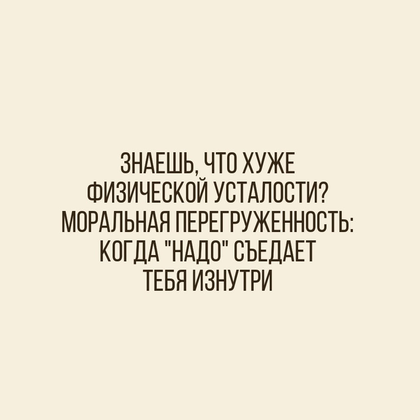 •Выпишите ВСЕ свои "надо" на лист бумаги. Безжалостно спросите каждое: "Кому действительно надо? Мне? Или это чужое ожидание/страх/привычка?".