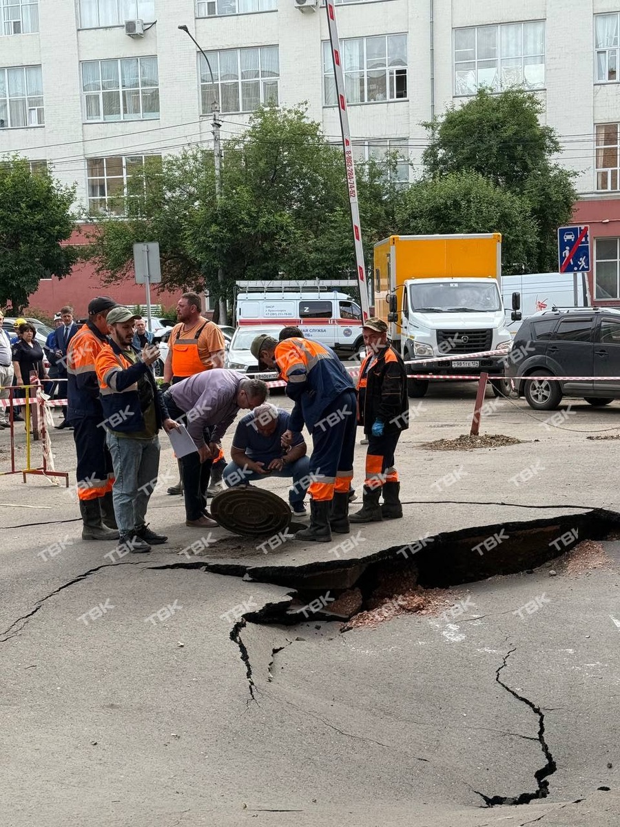 Провал возник утром 2 июля у дома №114 на улице Бограда после начала подачи горячей воды. На месте работают оперативные службы, подачу воды в дом приостановили. Сообщается, что пострадавших нет. Грунт провалился прямо у подъезда. Это место оградили, сейчас там работают наблюдающие, спасатели, полиция и другие городские службы. Подачу воды незамедлительно откючили, сообщают в СГК. На месте провели штаб под руководством и.о. мэра Алексея Шувалова, принимается решение о расселении людей. Напомним, сегодня утром горячую воду начали возвращать жителям нескольких районах, в том числе Железнодорожному району, где случился провал. Как сообщают в СГК, по контуру Красноярской ТЭЦ-2 продолжают возвращать горячую воду. Обновлено в 9:26 2 июля: Обстановка у дома на Бограда, где провалился грунт, прямо сейчас. Как передает наш корреспондент, вопрос о расселении жильцов решается. На месте работают ресурсники, спасатели, специалисты мэрии. Обновлено в 9:45 2 июля: Для жителей, которых эвакуировали