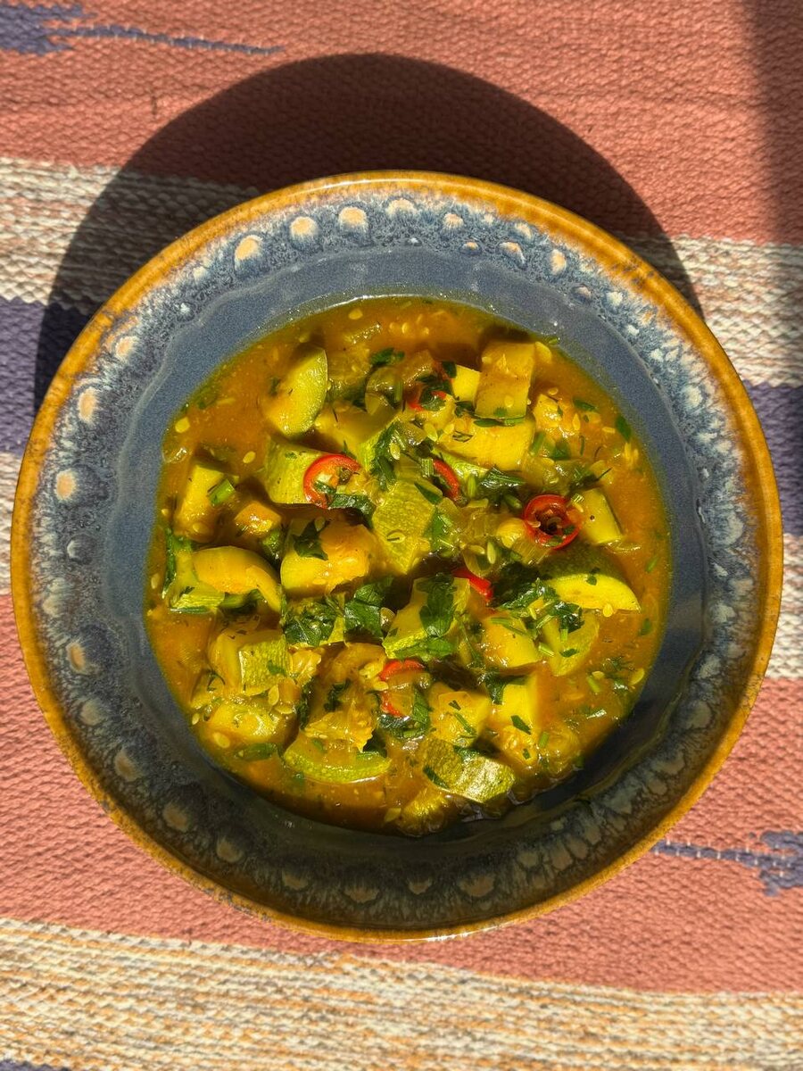 🔠🔠🔠🔠🔠🔠🔠 🔠🔠🔠🔠🔠 Кабачковое карри Очень просто, очень быстро, очень вкусно. Ингредиенты: 1️⃣ Кабачок - 700-800 гр 2️⃣ Лук репчатый - 1 луковица 3️⃣ Приправа карри - 1 ст.л 4️⃣ Куркума - 1 ч.л 5️⃣ Паприка - 1 ст.л 6️⃣ Зелень 7️⃣ опционально - перец Чили - 1/2 небольшого стручка 8️⃣ Растительное масло для обжарки - 1 ст.л 9️⃣ Пол стакана воды с разведённой 1 ст.л кукурузного крахмала Приготовление: 1. Лук режем мелким кубиком и обжариваем на растительном масле 2. Кабачок режем брусочками. Обжариваем вместе с луком. 3. Накрываем крышкой и тушим минут 15 4. Выливаем воду с разведённым крахмалом. Перемешиваем до загустения и добавляем резаную зелень с колечками Чили. Семена и перегородки удалите. Ангела за трапезой! Ваш ПП - Православное Питание - канал о пище, не только телесной, но и духовной Как искать рецепты? Жми, читай, выбирай ⏬️ Поиск рецептов на канале #пост #овощи #сковорода #кабачок #карри #низкокалорийное