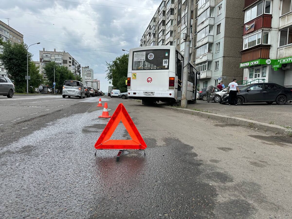 В Красноярске в ДТП пострадали пассажирка автобуса и пять автомобилей