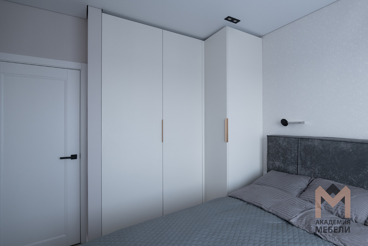 Новая работа – мебель в спальню на Новгородском, 176 Создание идеальной спальни — это не только выбор цвета стен и текстиля, но и продуманная, функциональная мебель, которая подчеркивает стиль и дополняет атмосферу. В этом проекте, где каждая деталь выверена до мелочей, мы представляем угловой шкаф, тумбу и туалетный столик, которые стали не просто частью интерьера, но и архитектурой хранения, встроенной в эстетику комнаты. Для этого проекта мы использовали проверенные и надежные материалы. Корпус мебели выполнен из ЛДСП Egger в цвете "белый премиум" — прочный и эстетичный материал, который не только гарантирует долговечность, но и добавляет лёгкости пространству. Декор «Белый премиум» зрительно расширяет комнату, а его универсальный оттенок идеально сочетается с любым стилем. Фасады и боковые панели сделаны из крашеного МДФ в цвете "Софт милк" — нежный, матовый оттенок, который сохраняет глубину и не перетягивает внимание. Такой выбор материала позволяет создать сбалансированный и уют