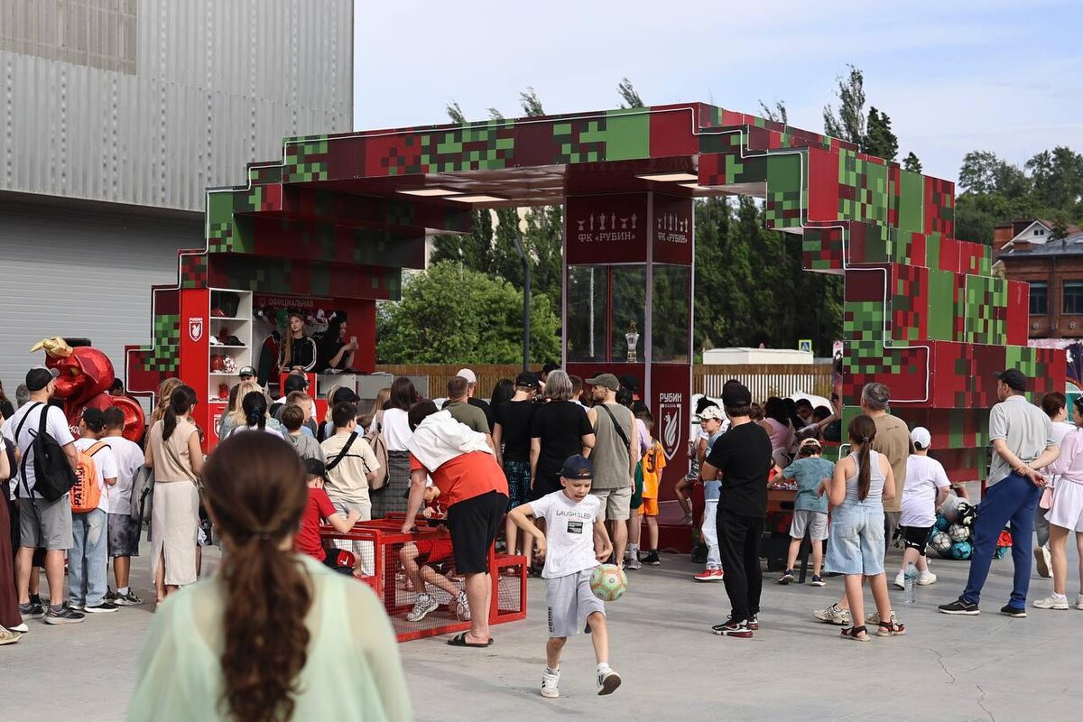 Всем привет от Казанского Рубина! 👍 Футбольный клуб — это не только про игру. Это болельщики, республика, город, эмоции, истории. Это лицо города. Вплетать клубные цвета в улицы — значит укреплять ту самую невидимую, но прочную связь между командой и теми, ради кого она выходит на поле. Пока игроки отдыхали — мы вышли в город. 1. Нарисовали мурал по эксизу болельщика. 2. Интегрировались в туристический маршрут, забрендировали для этого автобус. 3. Разместили мобильную точку продажи атрибутики в Парке Горького. 4. Установили «Летний дом Рубина» в стиле майнкрафт в детском парке.