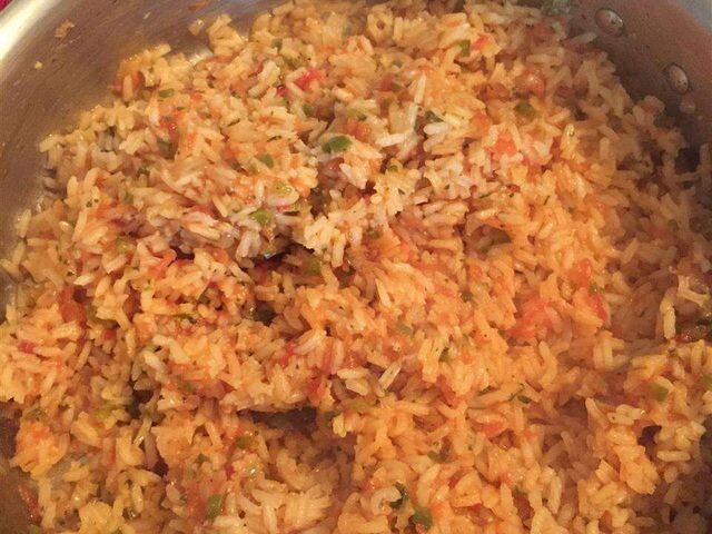 Arroz Rojo (мексиканский красный рис) Настоящий мексиканский красный рис. Легко приготовить! Используйте другой чили, если хотите получить более мягкий или более острый рис. ⌛ Подготовка: 15 мин. ⏰ Приготовление: 50 мин. 🍴 Количество: 5 порций Ингредиенты ✅ 2 помидора рома (сливовых), очищенных от сердцевины ✅ 2 столовые ложки растительного масла ✅ 1 чашка рубленого лука ✅ 2 зубчика чеснока, рубленого ✅ 1 чашка нешлифованного длиннозерного белого риса ✅ 1.75 чашки куриного бульона с низким содержанием натрия ✅ ¼ чашки консервированного томатного соуса ✅ 1 перец халапеньо, измельченный ✅ 2 веточки свежей кинзы ✅ соль по вкусу. Инструкция приготовления 1. Разогрейте растительное масло в тяжелой сковороде на средне-высоком огне и готовьте лук до полупрозрачности, часто помешивая, около 5 минут. Добавьте чеснок в лук и готовьте до появления аромата, около 1 минуты. 2. Выложите рис в луковую смесь и готовьте, часто помешивая, до легкого поджаривания риса, еще около 3 минут. Добавьте