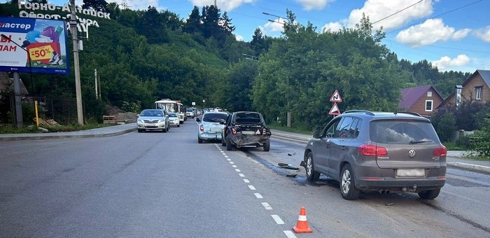 В районе дома № 230 по проспекту Коммунистическому в Горно-Алтайске днем 1 июля произошло ДТП с участием трех автомобилей. По данным Госавтоинспекции, 43-летняя жительница Екатеринбурга, управляя иномаркой Volkswagen Tiguan, не выбрала безопасную дистанцию до движущегося впереди учебного автомобиля Nissan Micra, за рулем которого находился 36-летний местный житель. В результате произошло столкновение. От удара «Ниссан» отлетел на такой же учебный автомобиль, движущийся впереди. Вторым «Ниссаном» управлял 37-летний горожанин. В Ресбольницу с компрессионным переломом позвоночника госпитализировали девятилетнего пассажира «Фольксвагена». В отношении женщины вынесено постановление по делу об административном правонарушении за нарушение правил расположения транспортного средства на проезжей части дороги.