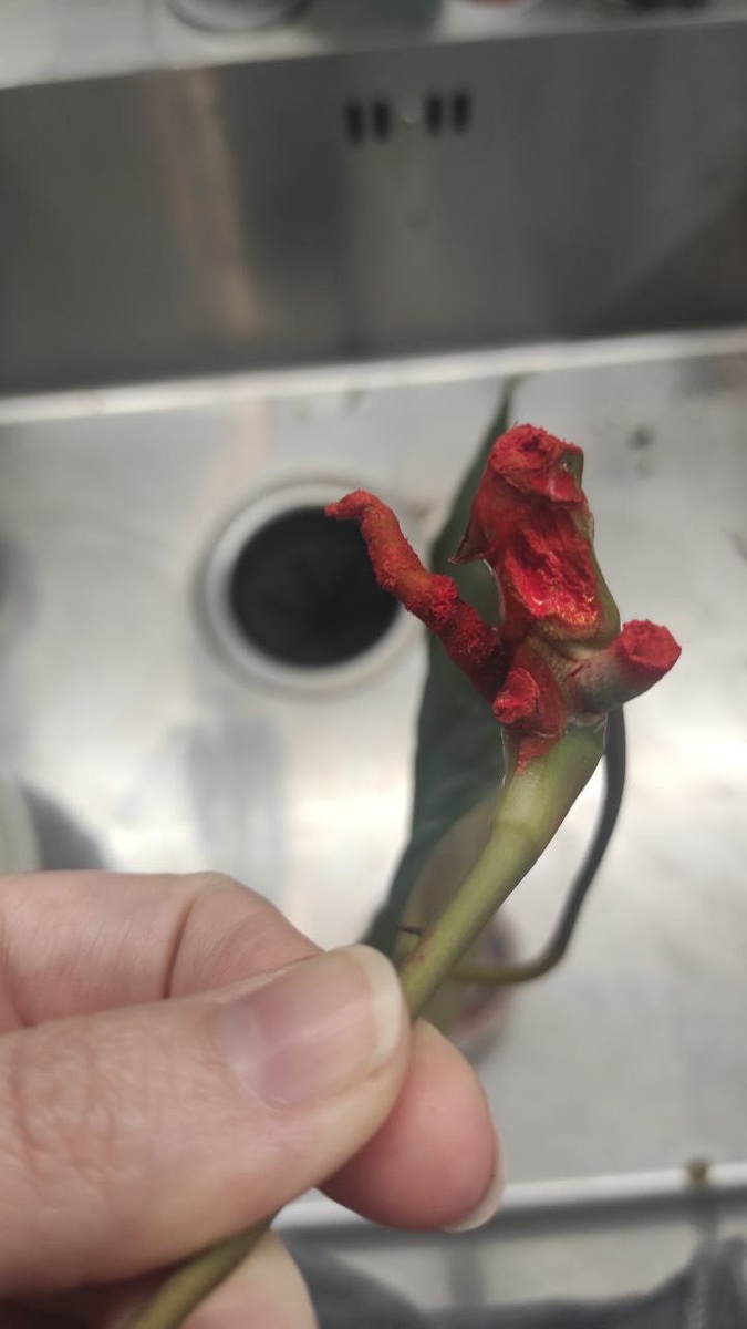 История одной неудачи 🥺 ☹️ Да, у меня тоже бывают истории одного провала, но почему-то с антуриумами это переживается гораздо сложнее, ведь они все - уникальные растения, и второй такой порой не найти. Есть у меня очень красивый антуриум, который я показывала тут. Пока еще есть, а не был Стоял он у меня долго без движения, но я все откладывала пересадку. Причем внешне по листьям все было ок, просто он не рос. После пересадки выяснилось, что у него сгнило очень много корней, я зачистила и поставила его в контейнер в мох, мол, с кем не бывает. Вчера решила проверить, как там у него дела. Но гниль не остановилась, а стала все больше подниматься по корням выше 😢 😱Все оказалось так, как мне рассказывали в ужастиках: через пораженный корень гниль стремилась зайти внутрь в ствол, т.е. это такие распахнутые ворота для смертельной болезни Сам ствол я тоже срезала, он ттт пока чистый на срез, что внушает немного оптимизма Какой мой порядок действий? 1️⃣Зачистила все до белого, даже гр