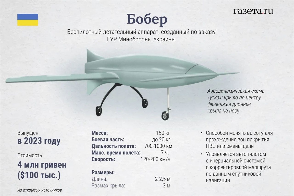 ❗️⚡️Поступает информация о разработке противником новой модификации тяжелого БПЛА-"камикадзе" большой дальности UJ-26 "Бобер". Модернизационные коррективы заключаются, прежде всего, в оснащении дронов головными тепловизионными MWIR/LWIR-датчиками наведения и командно-телеметрическими модулями, синхронизированными с антеннами Starlink в конформном исполнении. Более того, сообщается об отсутствии у новых UJ-26 стоек шасси, что (как и в случае с Ан-196 "Лютый") обеспечило снижение эффективной отражающей заметности и аэродинамического сопротивления, а также увеличило скорость полета до 220 - 240 км/ч и дальность действия. Также вероятна интеграция в систему наведения модулей ИИ, обеспечивающих автономные идентификацию и ранжирование целей. Материал подготовил: Евгений Даманцев https://dzen.ru/id/6425916a1950720421f18802