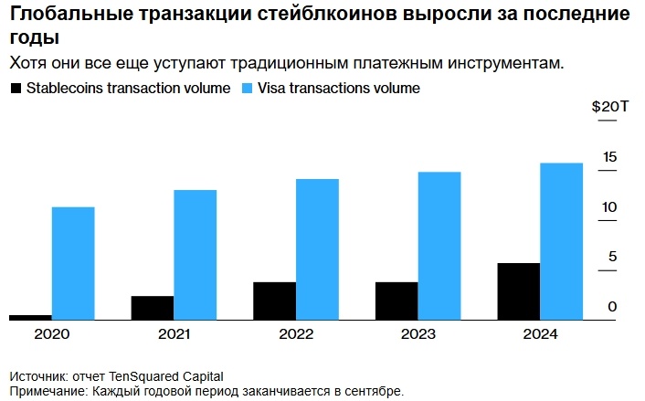 Стейблкоины обогнали Visa и Mastercard по объему транзакций