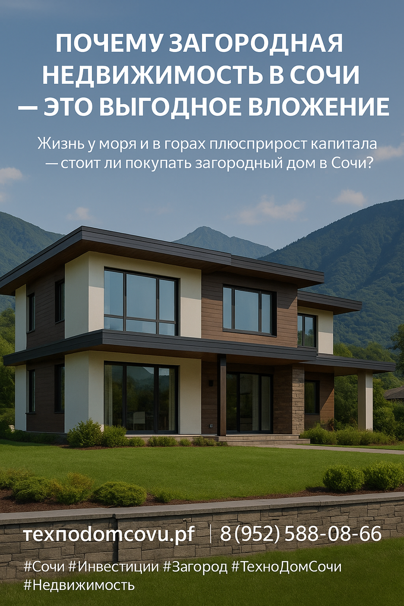📞 Звоните: 8 (952) 588‑08‑66 — получите консультацию бесплатно. Хэштеги: #Сочи #Инвестиции #Загород #ТехноДомСочи #Недвижимость