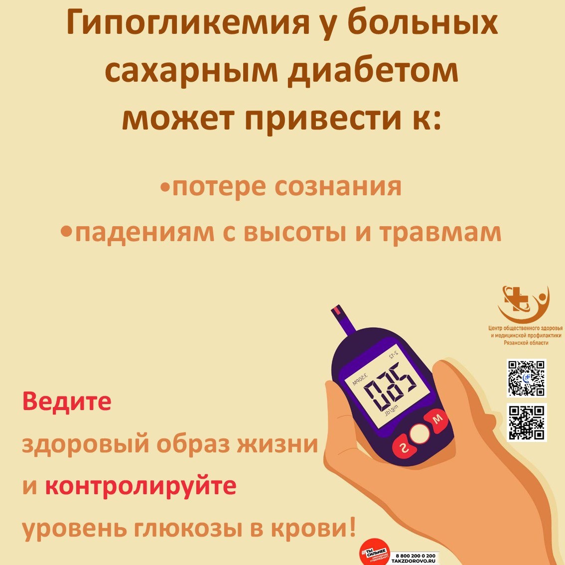 Осторожно: гипогликемия! Сейчас проходит Неделя снижения смертности от внешних причин, и важно помнить о рисках, связанных с гипогликемией у людей с диабетом. Резкое падение сахара в крови может привести к: • потере сознания • падениям (особенно опасным на высоте, лестницах, за рулем) • тяжелым травмам Как предотвратить трагедию? ✔ Регулярно контролируйте уровень глюкозы ✔ Всегда носите с собой быстрые углеводы (сахар, сок, глюкозу в таблетках) ✔ Предупредите близких о симптомах гипогликемии (дрожь, потливость, спутанность сознания) ✔ Особую осторожность проявляйте в ситуациях с риском падения Диабет требует бдительности! Позаботьтесь о себе и своих близких. #ДиабетБезОпасности #ПрофилактикаТравматизма #Гипогликемия #Диабет #НеделяБезопастности #БезопасностьПревышеВсего #ЗдоровыйОбразЖизни #Здоровоебудущее62 #ЗдороваяРязань