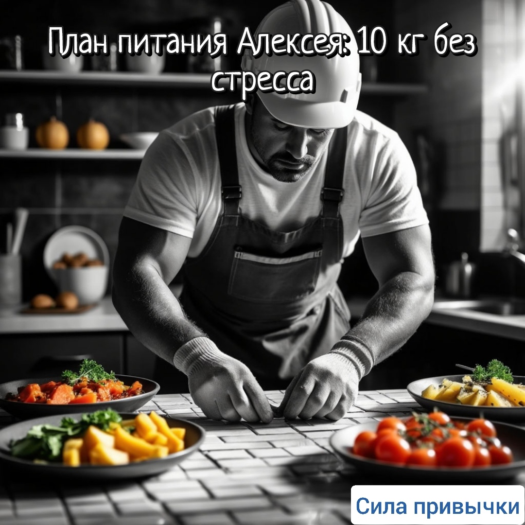 Пример плана питания для Алексея - цель скинуть лишние 10 кг (плавно без стресса для организма за 3-5 мес.) с учетом параметров и особенностей: Данные Алексея - Пол: мужчина - Возраст: 36 лет - Рост: 183 см - Вес: 104 кг - Активность: работа плиточника (средняя/высокая активность) + тренировки 2 раза в неделю - Аллергия: пыльца берёзы и полыни (может быть перекрёстная реакция на некоторые фрукты/овощи, например, яблоки, морковь, сельдерей – будем осторожны). Рекомендации по питанию: 1. Дефицит калорий: ~2300–2500 ккал/день (для плавного похудения ~0,5–1 кг в неделю). 2. Белки: 1,6–2 г на кг веса (~160–200 г в день) – для сохранения мышц. 3. Жиры: ~70–90 г (полезные: орехи, рыба, оливковое масло). 4. Углеводы: ~150–200 г (упор на сложные: гречка, овсянка, бурый рис). 5. Клетчатка: 30–40 г (овощи, отруби). 6. Вода: 2,5–3 л в день. Дополнительные рекомендации: ✔ Исключить: - Сахар, сладости, белый хлеб, фастфуд, сладкие напитки. - Алкоголь (высо