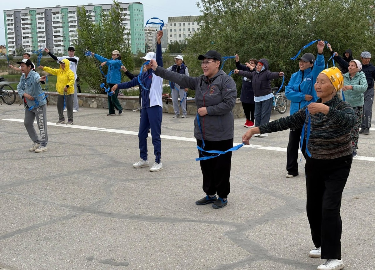 🤩 Флэшмоб «Голубые ленточки» состоялся в Якутске в честь Дня реки Лены