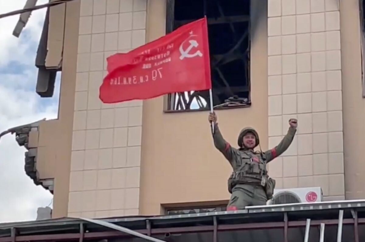 "На здании администрации города Лисичанск водружено знамя Победы", - написал военкор Марочко в своём канале, прикрепив видео, на котором военный держит знамя, стоя на полуразрушенном козырьке здания.