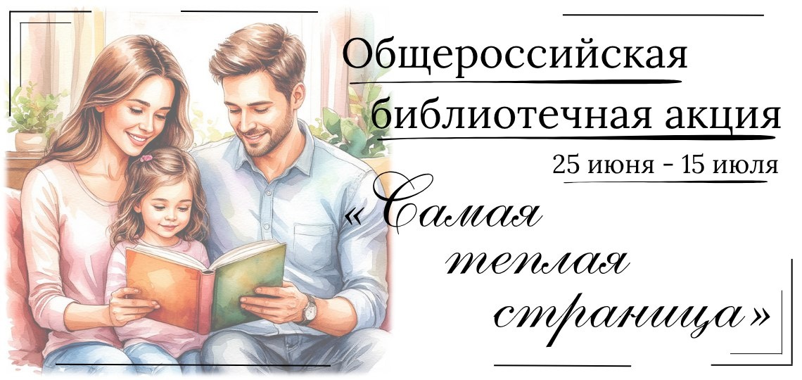 Общероссийская библиотечная акция «Самая теплая страница»📝✨ Ко Дню семьи, любви и верности, который ежегодно отмечается 8 июля в России, проводится общероссийская библиотечная акция «Самая теплая страница».🌼 Участники могут создать уникальные книжные выставки литературы для семейного чтения и разместить их в сети Интернет. Благодаря участию в акции их увидят не только читатели библиотеки, но и любители чтения из самых разных уголков нашей страны!🌼 Больше информации на сайте библиотеки: https://clck.ru/3MtkqP