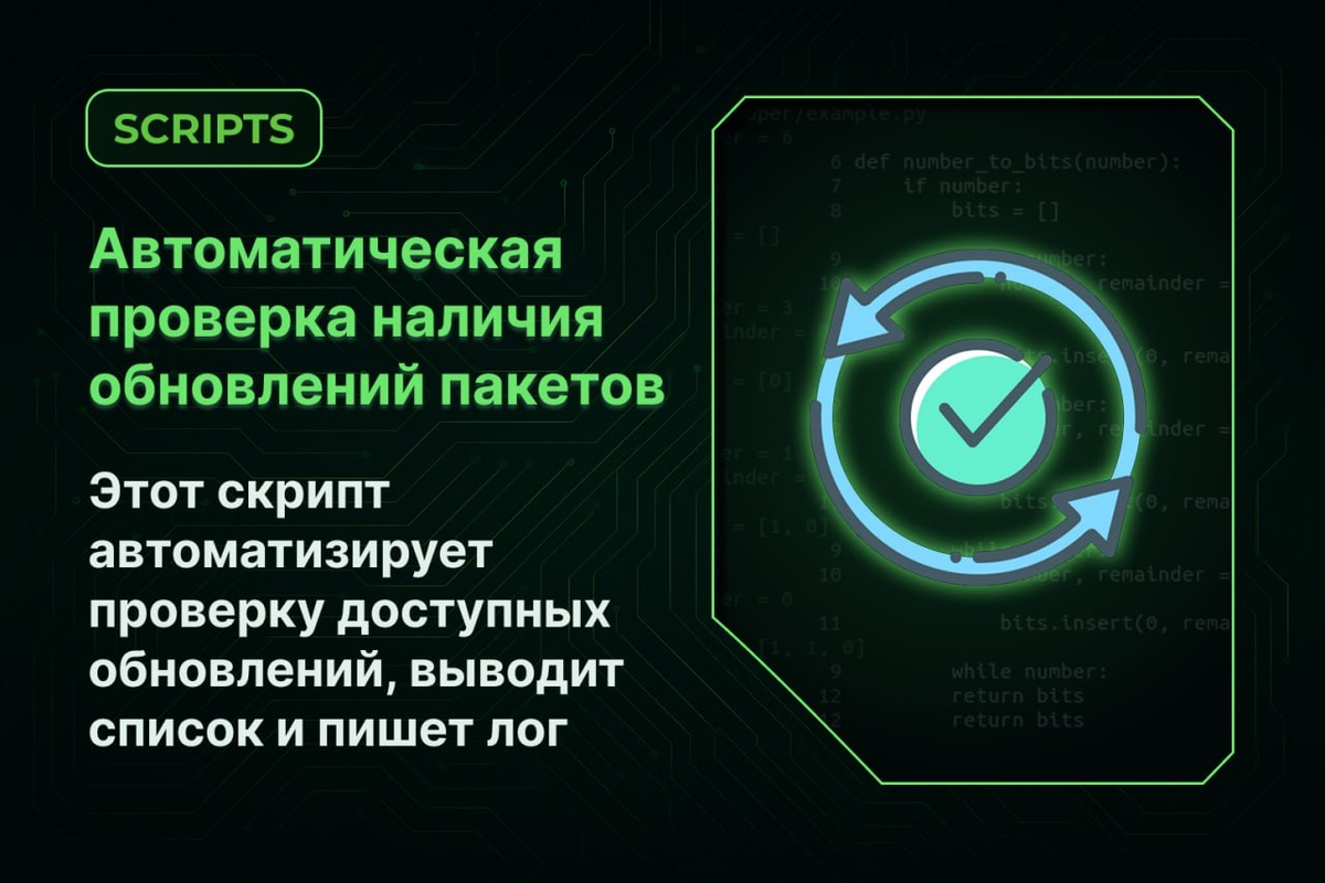 Если вы администрируете сервер или рабочую станцию на Debian/Ubuntu, важно регулярно проверять наличие обновлений. Этот скрипт автоматизирует проверку доступных обновлений, выводит список и пишет лог — удобно для мониторинга и уведомлений. ⚙️ Исходный код #!/bin/bash LOG_FILE="/var/log/apt_update_check.log" echo "🔄 Проверка обновлений APT... $(date)" | tee -a "$LOG_FILE" # Обновляем списки пакетов sudo apt update -qq # Проверяем наличие обновлений UPGRADES=$(apt list --upgradable 2>/dev/null | grep -v "Listing") if [ -n "$UPGRADES" ]; then echo "📦 Доступны обновления:" | tee -a "$LOG_FILE" echo "$UPGRADES" | tee -a "$LOG_FILE" else echo "✅ Все пакеты актуальны." | tee -a "$LOG_FILE" fi echo "🧾 Проверка завершена." | tee -a "$LOG_FILE" 🟢 apt update обновляет кэш пакетов 🟢 apt list --upgradable показывает, что требует обновления 🟢 Скрипт можно запускать вручную, по cron или в systemd таймере 🟢 Удобен для ведения истории обновлений или уведомлений через email/T