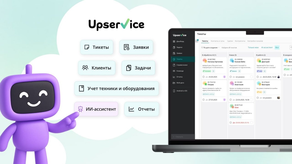 ИИ-ассистент работает внутри системы Upservice (полноценная Service Desk/Help Desk для обработки обращений).