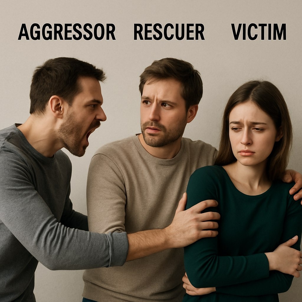 Треугольник Карпмана — это психологическая модель, описывающая деструктивные сценарии взаимодействия между людьми. Она была предложена Стивеном Карпманом в 1968 году и с тех пор широко используется для анализа конфликтов, созависимых отношений и повторяющихся проблем в коммуникации. В треугольнике всегда три ключевые социальные роли: Жертва, Преследователь (Агрессор) и Спасатель. Эти роли взаимосвязаны, участники могут переходить из одной роли в другую, а сама динамика поддерживает нездоровую атмосферу и мешает конструктивному разрешению конфликтов.