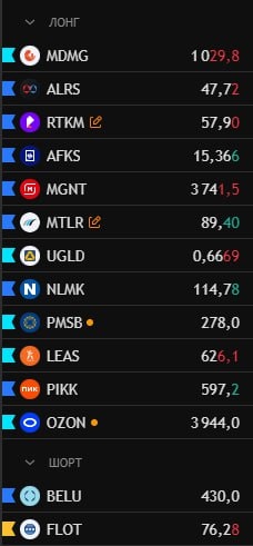 АКЦИИ В МОЕМ СПИСКЕ НА СЕГОДНЯ НА СКРИНАХ 🤓 Подробный видео обзор Сначала смотрим на общий фон и только потом принимаем какие-либо решения ☝️ Особо выделяю к просмотру: 🟢Для Лонга $LEAS После IPO акцию "задушили", впрочем как и все айпиошные истории вместе с Российским рынком. Сейчас оттолкнулись от предполагаемого дна. В левой части графика сильные покупки. Сейчас расторговываемся в боковой коррекции. Нет агрессивных продаж. Будем искать отсюда покупки. $AFKS Рассмотрим таймфрейм 1 час. Минимумы и максимумы повышаются. Тренд восходящий. Нет агрессивных продаж в коррекции. Всё что выше 15 - это поиск покупок. $MGNT Очень интересно наблюдать за этой акцией. Если смотреть глобально на дневном таймфрейме, то там было прям четкое закругление с затухающими продажами. Хочется прям снизу поймать хорошее движение. Поэтому стоить пристально наблюдать на младшем таймфрейме. Идут хорошие покупки на объемах. Минимумы и максимумы повышаются. Всё что выше 3700 - это поиск покупок. $MTLR Силь