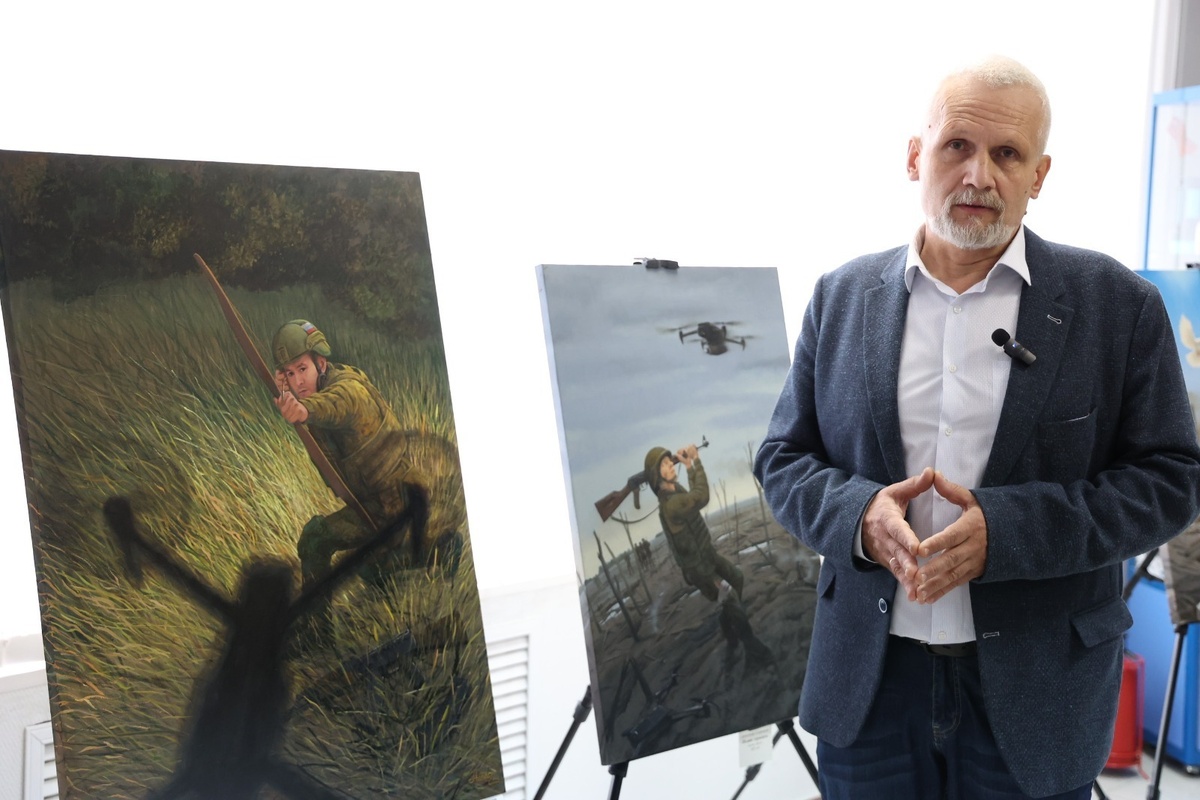 Выставка известного уфимского живописца, члена Творческого союза художников России и Международной федерации художников при ЮНЕСКО Александра Скорнякова открылась в здании Башкортостанского регионального отделения партии «Единая Россия». Широкой публике мастер известен как организатор проекта «Арт-поддержка», участники которого – ведущие художники региона – своим творчеством поддерживают бойцов на специальной военной операции. Многие сюжеты картин посвящены реальным событиям и реальным людям. Затишье после боя на фоне руин домов, провожающий ребят ветеран Великой Отечественной, стоящие в обнимку на передовой священник и мулла… «Просто низкий поклон вам за то, что мы здесь все-таки живем мирной жизнью, то, что мы пытаемся развиваться, - обратился Александр Скорняков к участникам СВО. – Символично, что этот день, который собрал всех здесь получить знания, является и Днем ветеранов боевых действий, днем памяти и скорби о тех, кто воевал за нашу страну, за Россию». Один из написанных кисть