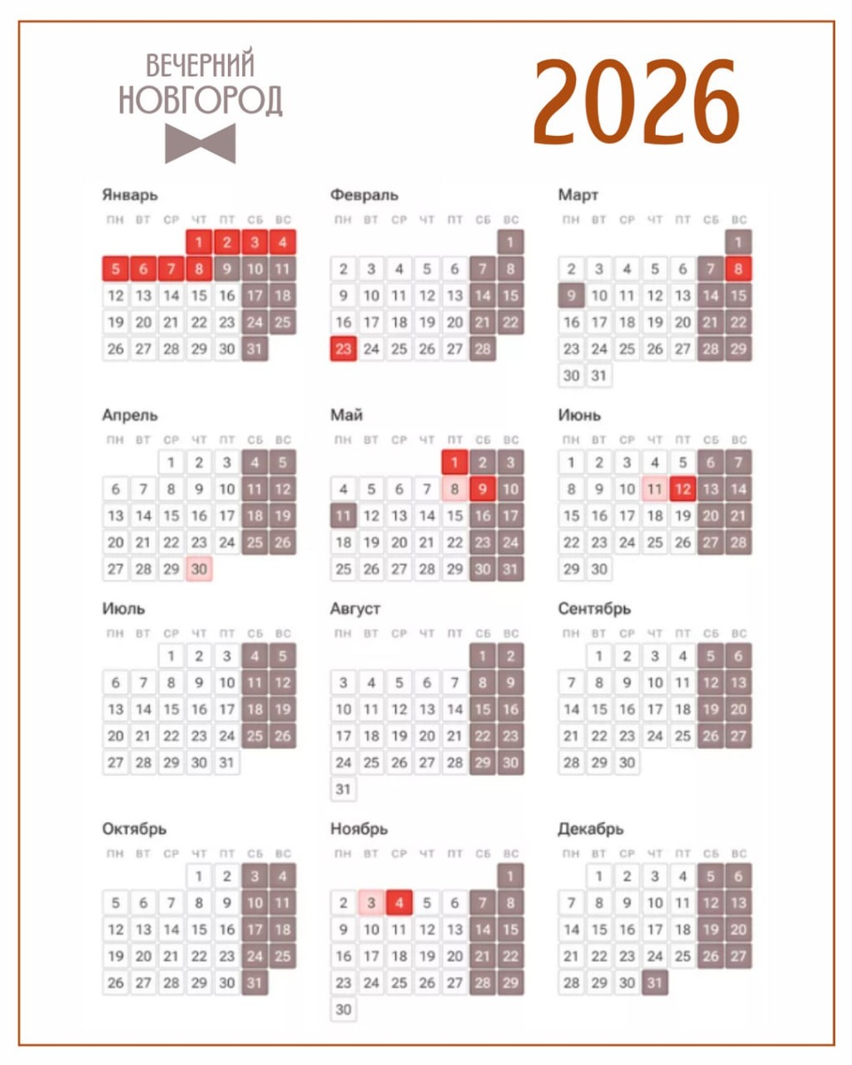 Минтруд России подготовил проект календаря праздничных и выходных дней на 2026 год.