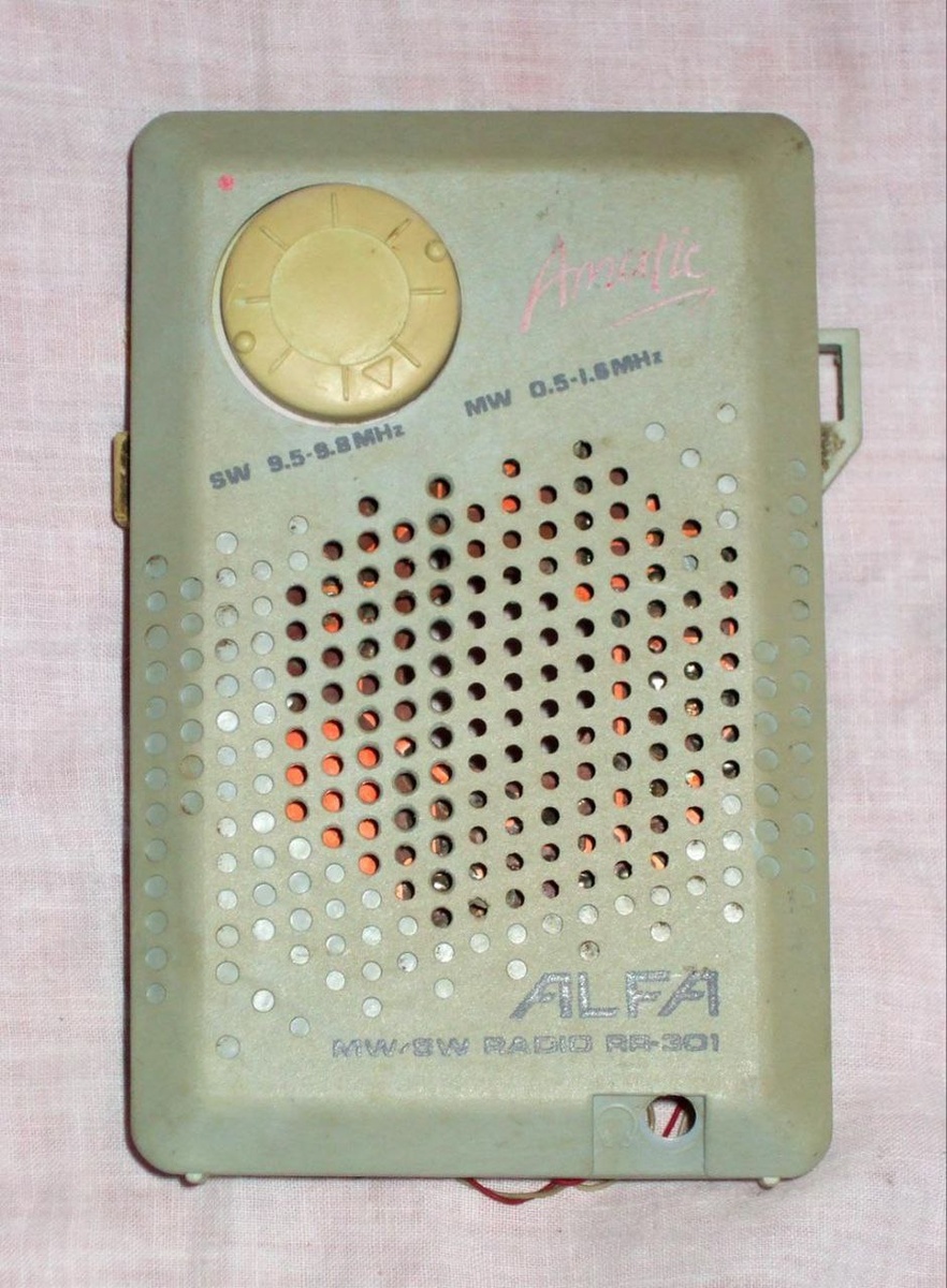 «Alfa RR-301» радиоприёмник. Кишиневский телевизионный завод «Альфа» с 1994 года производил малогабаритный радиоприёмник «Alfa RR-301». К сожалению, подробной информации о приёмнике найти не удалось, но судя по фотографии, он представляет собой двухдиапазонный супергетеродин, который работает в диапазоне СВ и КВ с частотой 9,5…9,8 МГц. Прослушивание осуществляется через головные телефоны, а питание осуществляется от батареи «Крона». ➖➖➖➖ РАДИО(73!)