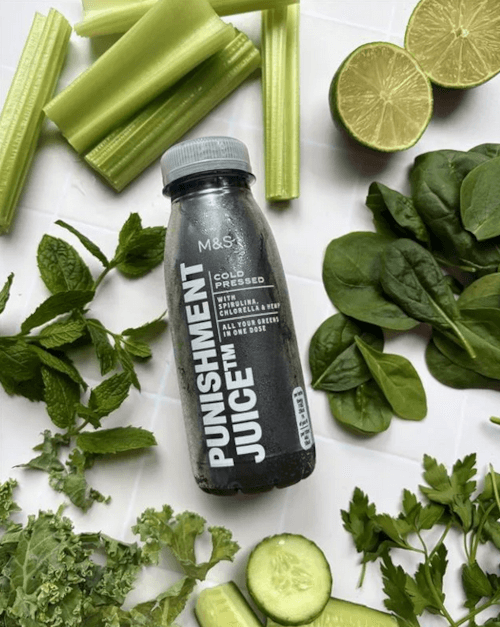 Это овощной сок с добавлением спирулины, который очень полезен благодаря составу: там и огурцы, и шпинат, и сельдерей, и лайм, и капуста, и Алоэ Вера, и мята, и петрушка. Но вот название у напитка странное —