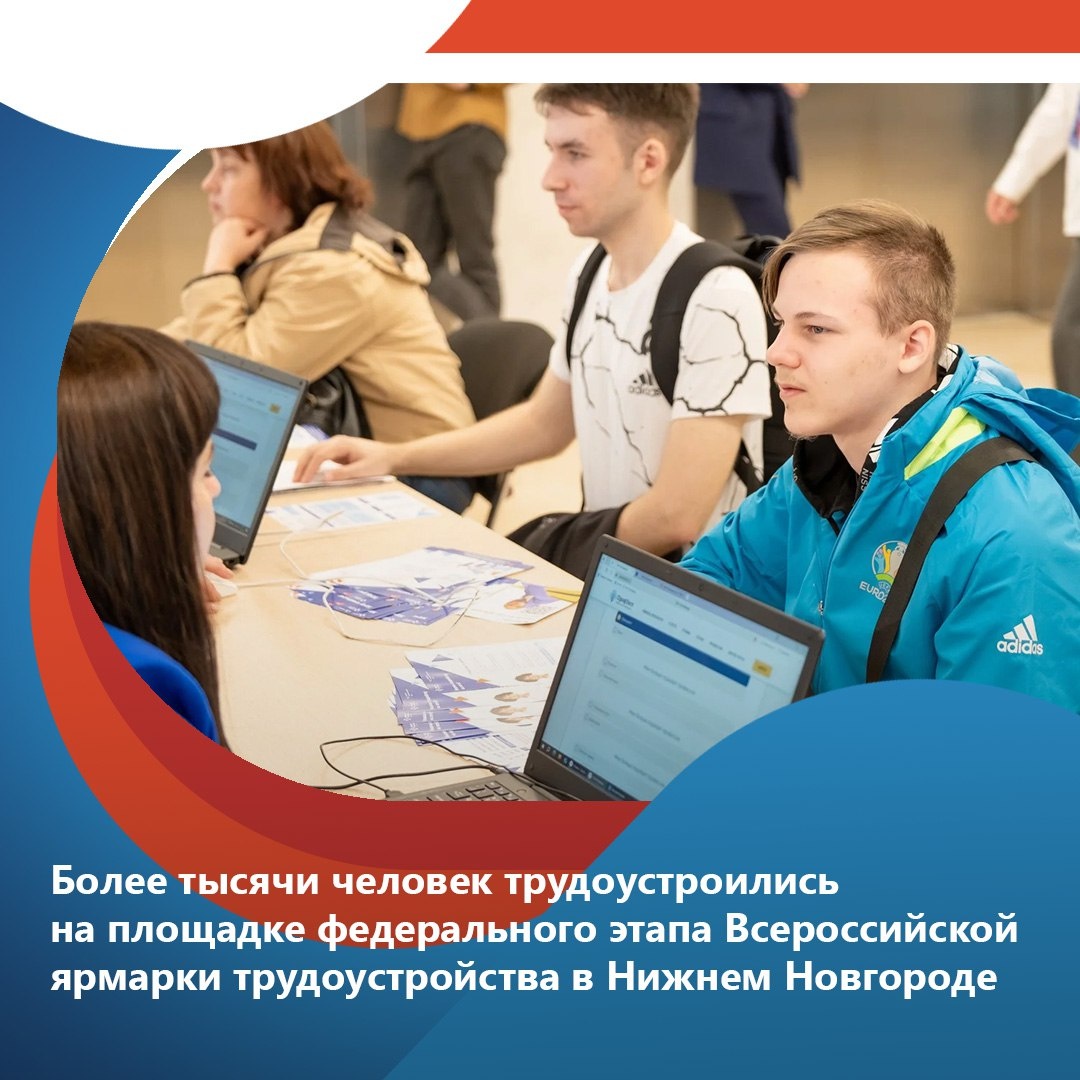 ✅ Более тысячи человек трудоустроились во время федерального этапа Всероссийской ярмарки трудоустройства в Нижнем Новгороде