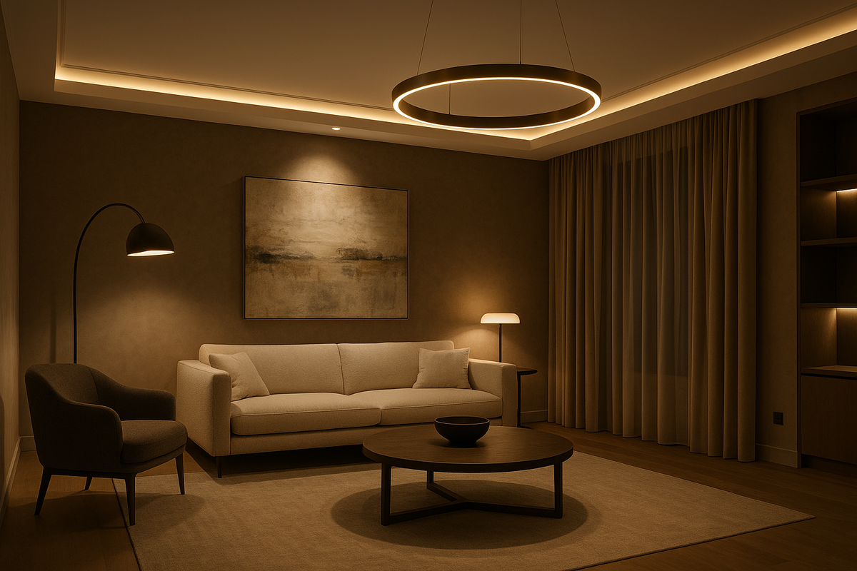 Такой подход называют многоуровневым или слоистым освещением. Его идея проста: каждый слой отвечает за свою функцию, а вместе они дают световой «коктейль», который можно подстроить под чтение, работу за ноутбуком или вечерний сеанс кино.
