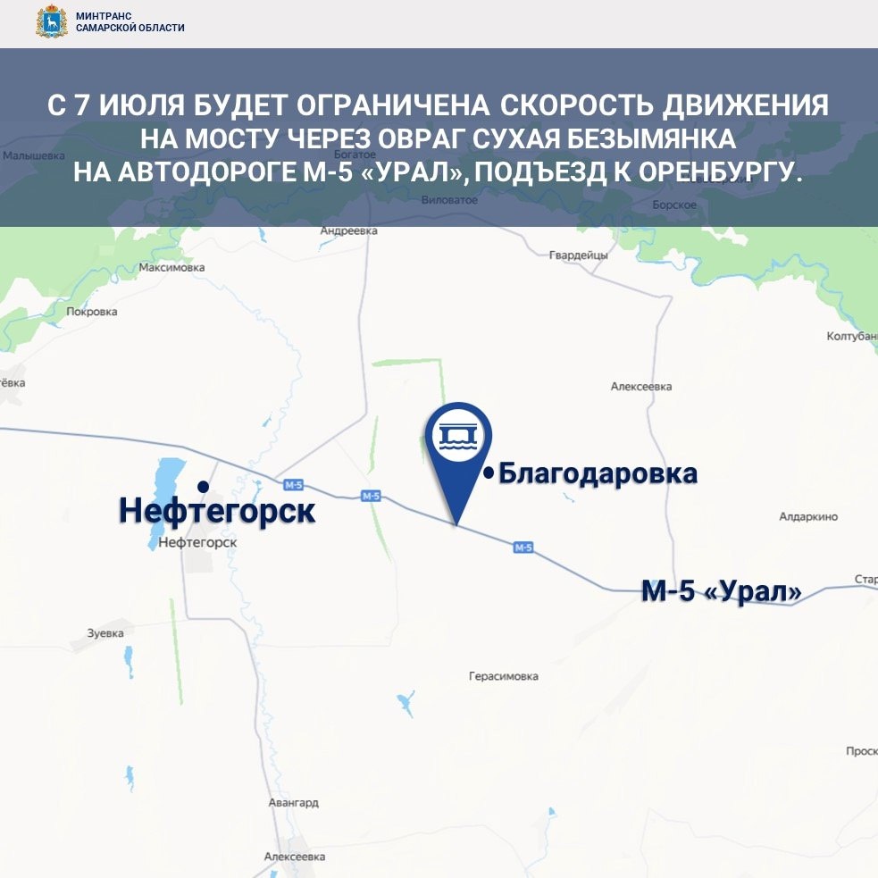 ⛔️ В Самарской области планируют отремонтировать мост через овраг Сухая Безымянка на трассе М-5 "Урал" Это предупредительные работы, которые стартуют 7 июля 2025 и продлятся до ноября этого года. Планируют заменить деформационные швы и отремонтируют примыкание к мосту. На участке будет введено ограничение скорости до 40 км/ч, а также установлено светофорное регулирование движения. 📸 Минтранс Самарской области