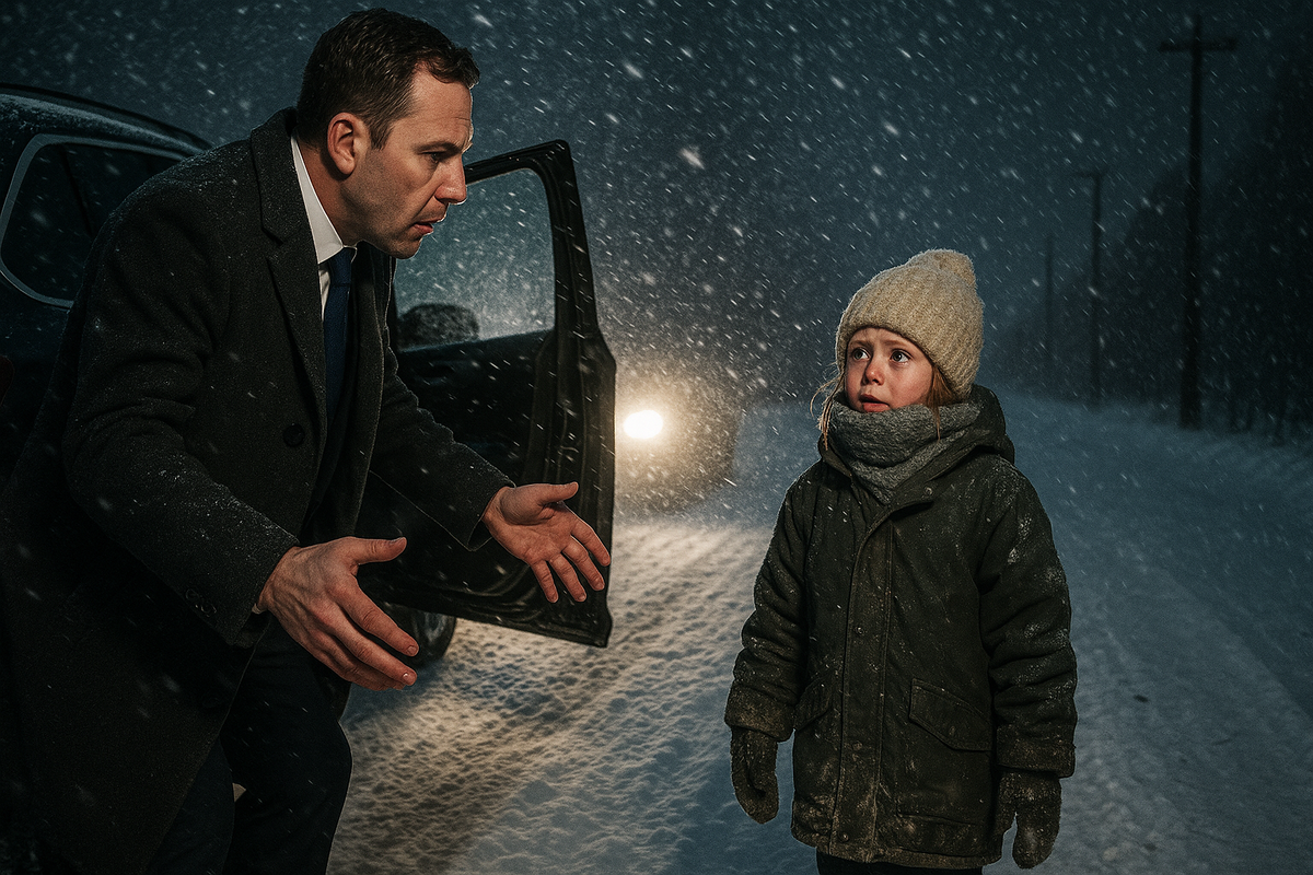 А посреди дороги стоит какая-то кроха. Девчонка маленькая, вся в снегу, дрожит.