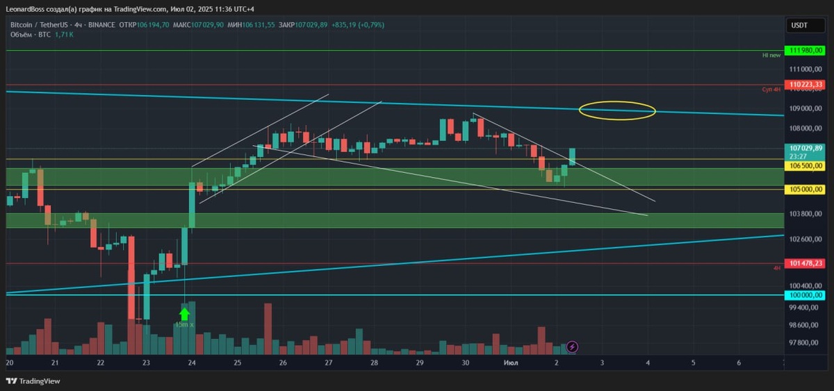 В ответ на пост #BTC 🕯Локально🕯 ⚠️Всем привет! Локальный сценарий показал половину необходимой отработки. Увидели ожидаемый удар в блок и соответствующую реакцию покупателя. Движение было довольно нервным, даже в большей степени для держателей альтов. Как видите, коллеги, в очередной раз лицезреем работу ММ с маржинальным рынком, именно там, как и говорил ранее, разворачиваются основные события!! P.s. сегодня ожидаю продолжения движения цены BTC вверх, с небольшой скоростью и короткими остановками на мелькие коррекционные движения. Локальная цель всё та же, зона трендовой сверху = это основная среднесрочная преграда, прежде, чем график поедет выше!! Альты будут двигаться паррельно битку, лучше всего будут реагировать сильные фундаментальные активы. Необходимо следить за доминацией BTC и чекать текущий уровень. Нельзя уходить выше 65,60% и очень жду локального разворота именно сейчас!!!