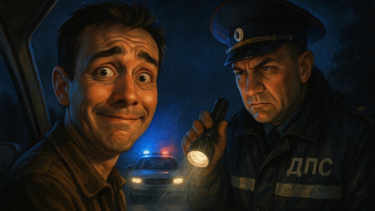 Ночь. Асфальт блестит после недавнего дождя, город чуть выдохся и наконец уснул. Я еду домой — расслабленный, будто только что выбрался из бани: всё документы в порядке, ремень застёгнут, скорость не превышаю. И вдруг — маячки. ДПС. Сигнал, рука — тормози, водитель!