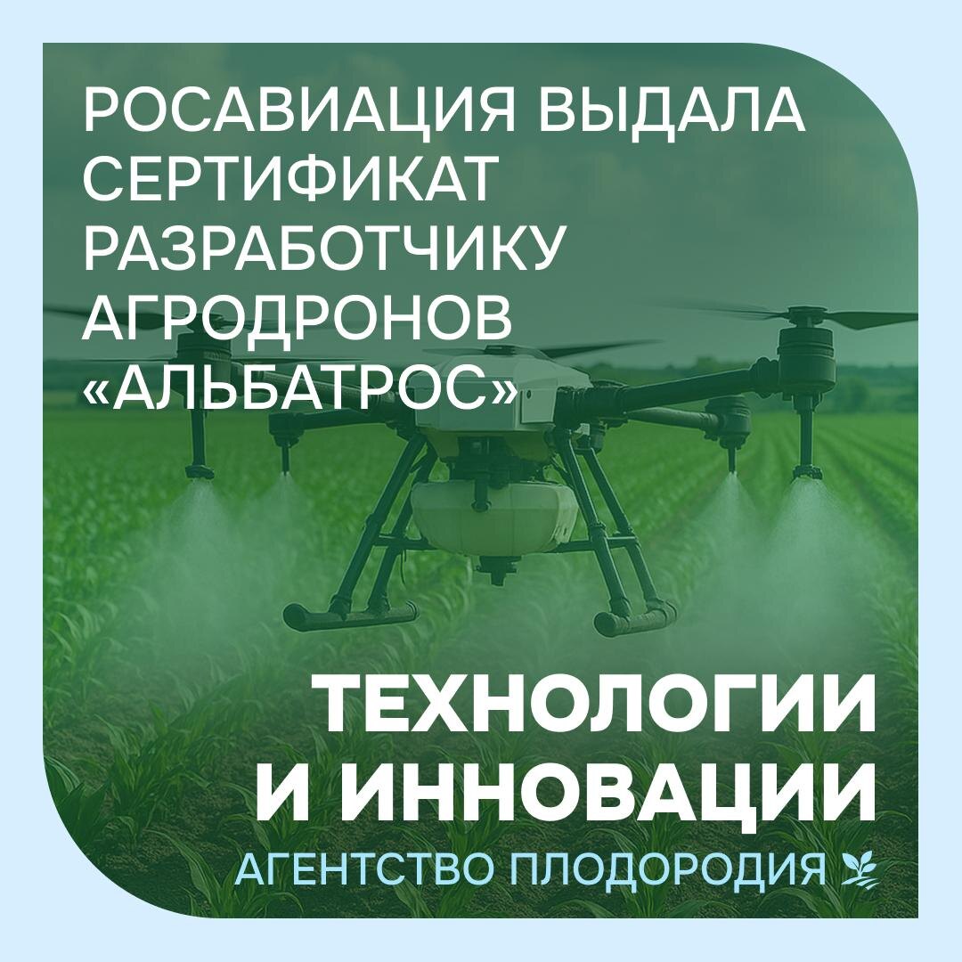 🌱 Росавиация выдала сертификат разработчику дронов «Альбатрос», которые будут применяться в сельском хозяйстве