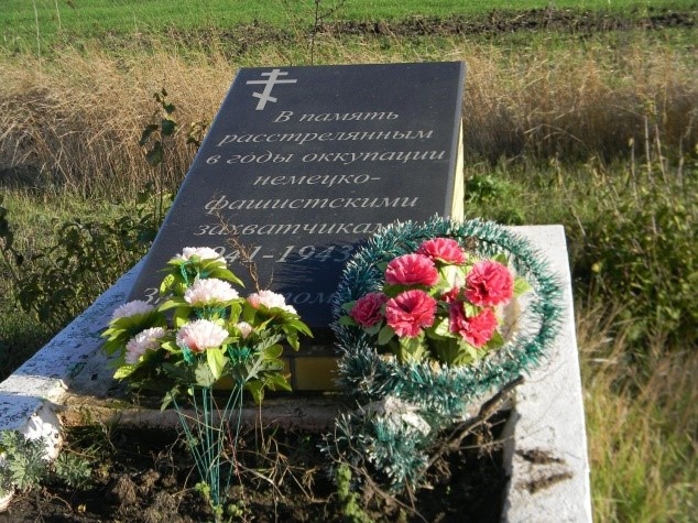 Иногда фашисты проводили наших пленных солдат по селу. Особо запомнилось, как по дороге на Мариуполь, проходившей тогда через деревню, гнали пленных, и жители старались успеть выйти на дорогу и вынести им еду. Бросали вареную картошку, при этом спрашивали их фамилии и имена, надеясь узнать о судьбе родственников или знакомых. Я стала свидетелем расстрела рабочих, которые трудились по приказу оккупантов. Их обвинили в повреждении линии немецкой связи. Это произошло 22 марта 1942 года в переулке Колхозный. Я стояла у забора и видела, как всех задержанных построили в три шеренги и начали гнать в сторону Мариуполя. Мои дяди Погореловы Василий Захарович и Николай Захарович и Подлипенцев Кирилл Кондратьевич попали в третью шеренгу, куда фашисты затолкали и чужих людей, которые пришли обменять вещи на кусок хлеба, рыбу. Их саночки так и остались стоять у соседних хат. Никто не мог подумать, что сейчас начнется расстрел. Две шеренги прогнали, а когда пошла третья, раздались автоматные очереди в спины идущим. Дядя Николай кинулся бежать в сторону переулка. Там на холме и упал, сражённый пулей. Расстрелянных сложили в большие сани и свезли всех в одну могилу.