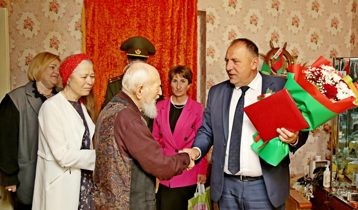 ✨Поздравления для ветерана. 🇧🇾В преддверии Дня Независимости Республики Беларусь звучали поздравления для ветерана Великой Отечественной войны Ивана Павловича Ковязина. К нему приехали председатель районного исполнительного комитета Сергей Бартош, военный комиссар Шкловского района Александр Осипенко, а также представители бумажной фабрики «Спартак», управления по труду, занятости и социальной защите райисполкома, районного центра социального обслуживания населения. «Наш главный праздник – День Независимости Республики Беларусь - стал возможен благодаря вам, ветеранам, благодаря тому, что вы победили, отстояли нашу страну в Великой Отечественной войне, а затем восстанавливали ее в послевоенные годы», – отметил Сергей Иванович.