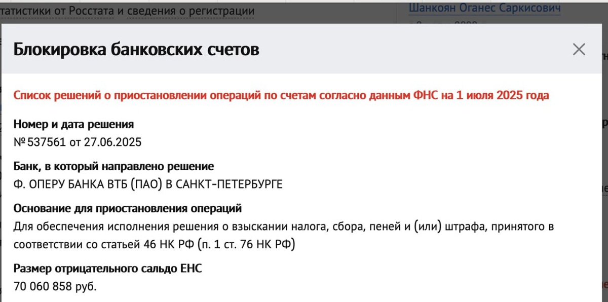 Пришёл июль – #плОтинОлог: ФНС заблокировала счета небезызвестной компании «Аквариум», которая в январе 2025 года (вместе с «Север Строем») сменила «прописку» с мурманской на московскую.