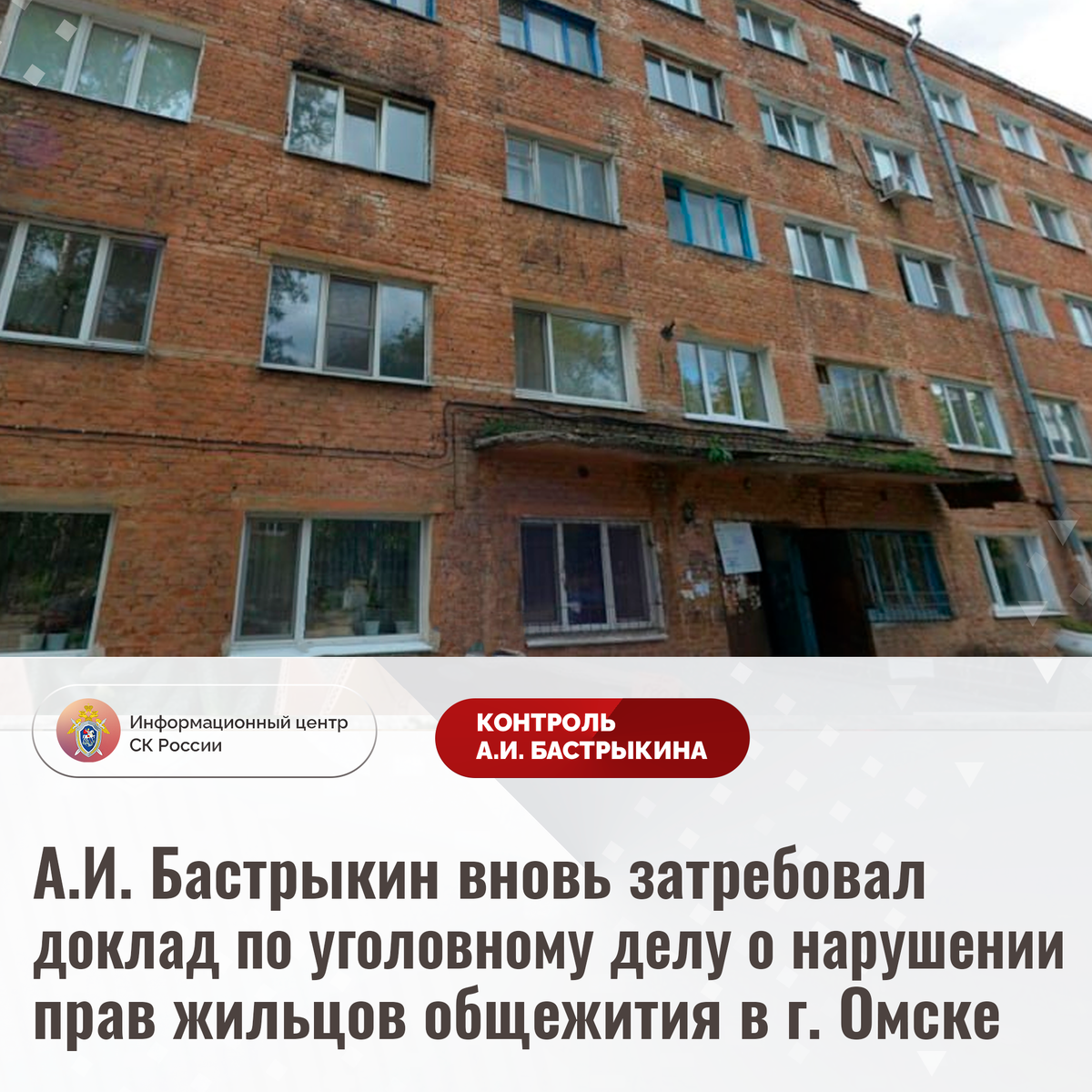 А.И. Бастрыкин вновь затребовал доклад по уголовному делу о нарушении прав жильцов общежития в г. Омске